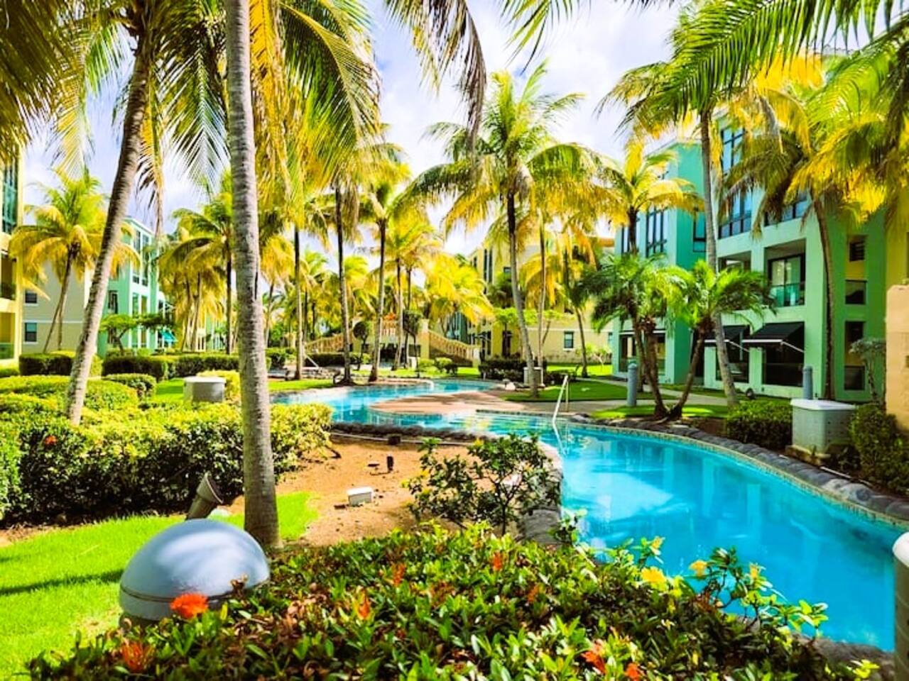 Escape to Aquatika Resort, a tropical paradise in Loíza, Puerto Rico, with direct beach access and a serene setting. Enjoy the beauty of lush gardens, unwind on the balcony's hammock with pool and garden views. Make the most of your vacation with top activities in and close to our place. 🌴 Direct beach access 🏊 5 sparkling pools for all ages 🎾 Tennis, mini golf, basketball and beach volleyball courts 🍔 Fully equipped kitchen 🌺 Relax in peaceful gardens & book your getaway now!