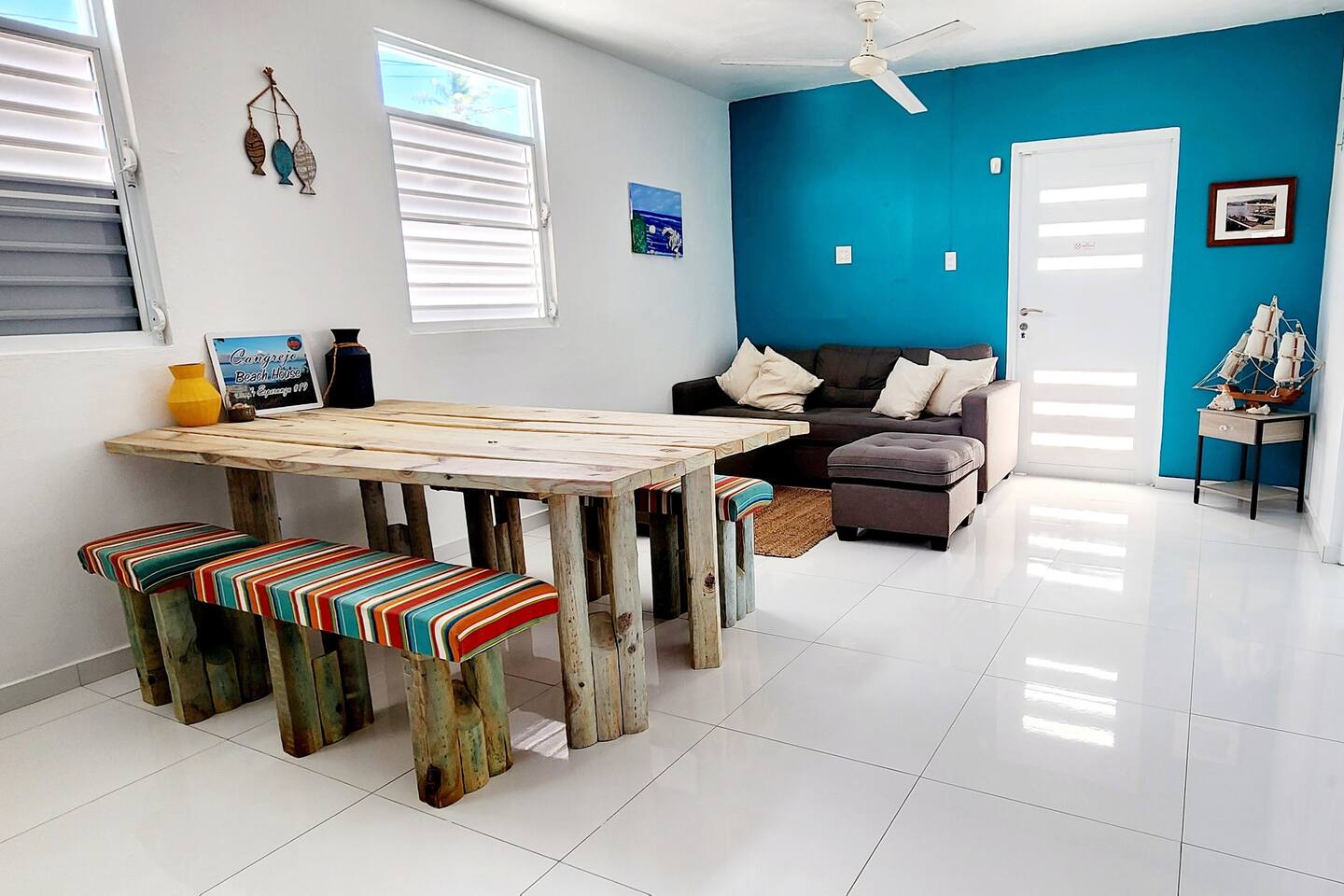 Charming & contemporary beachfront house, 1st floor Located on the SE side of the island, in the heart of Cangrejo Beach (Arroyo) and the Caribbean Sea. Steps away from the boardwalk, pier, restaurants, coffee shops, bars, and more. Casa Cangrejo provides a battery backup system for a worry-free getaway. The Arroyo fisherman village is known for the laid-back atmosphere. Great place to relax & sunbathe. Peaceful mornings & fulfilled afternoons await you at this truly local experience