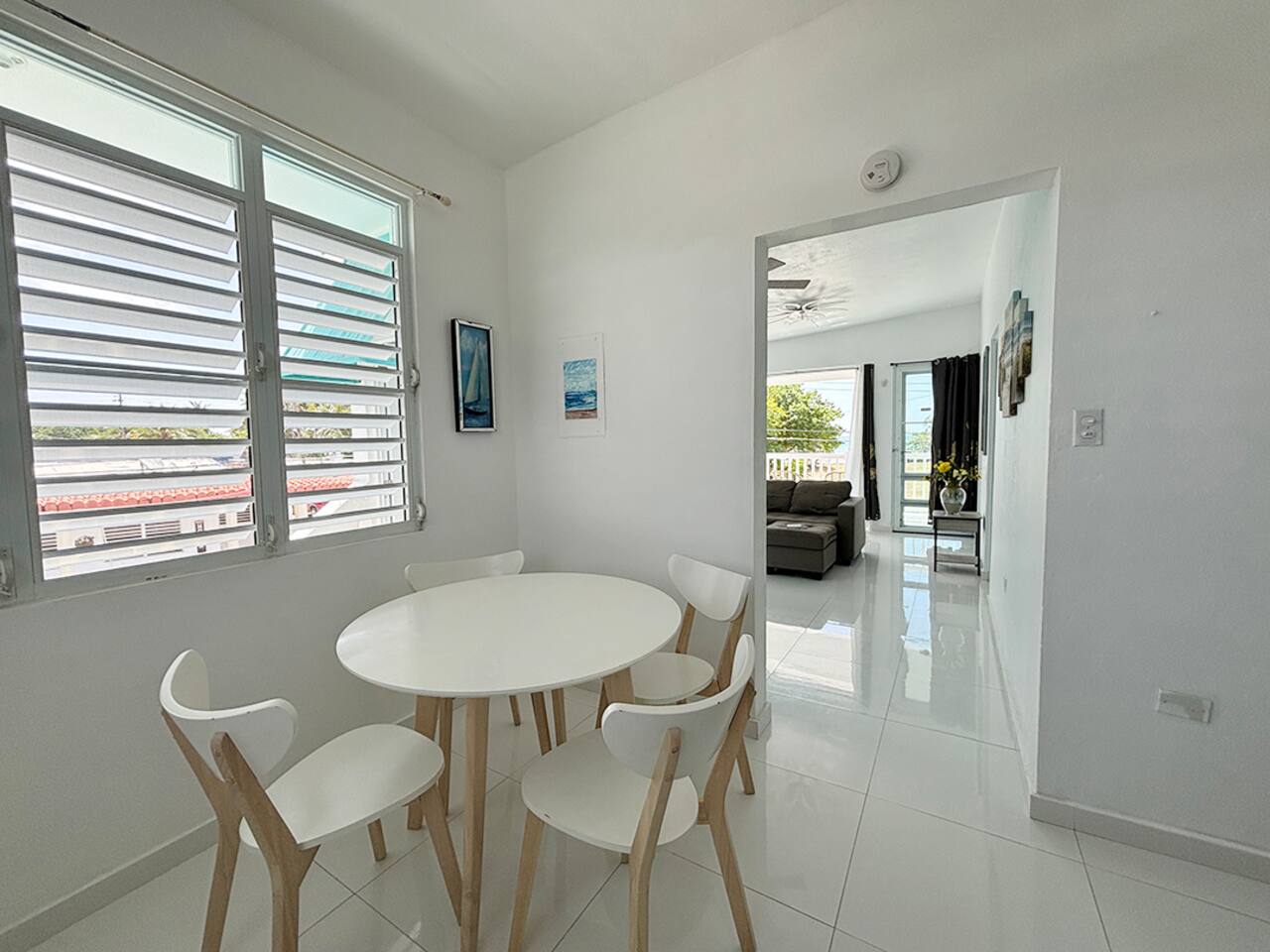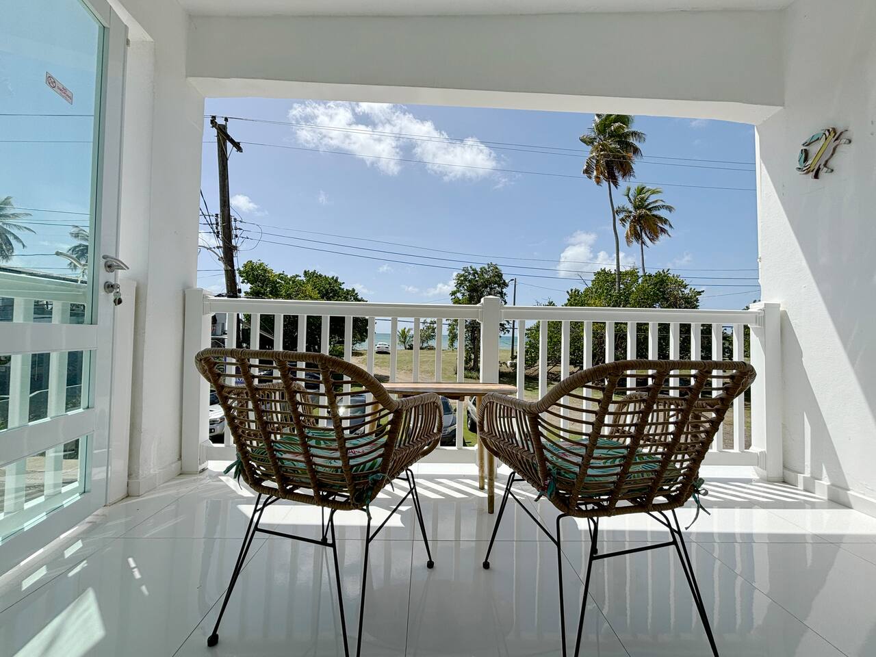 Cangrejo Beach House provides a truly Puerto Rican experience, located in the fisherman village of Cangrejo Beach and within walking distance of Arroyo Malecon (Boardwalk). Boricua owner, from the way he lives to you. Live Boricua! This house is located on the 2nd floor; you need to use the stairs to access the house. Decorated with local art, this house offers you a modern, fully equipped kitchen with a dining table for 4. Your family has 2 full bathrooms, 1 inside the house with access from the master bedroom or kitchen. The 2nd one is on the outside and is a shared bathroom next to the entertainment area patio. If you are outside the property and need to use the bathroom, you will have easy access to it. For sleeping, your family has 2 bedrooms with A/C. The master bedroom has a king bed, and the 2nd bedroom has a double bed. We highly recommend this house for 4 guests, but if you have kids or small adults, they can sleep on the sleeping sofa with a ceiling fan. Accommodating in total 6 guests. Enjoy the beach breeze from the balcony with a breathtaking view of the park and beach. Witness the Puerto Rican fisherman life from the balcony during the morning with your Puerto Rican coffee (provided) or with a glass of wine enjoying the sunset.