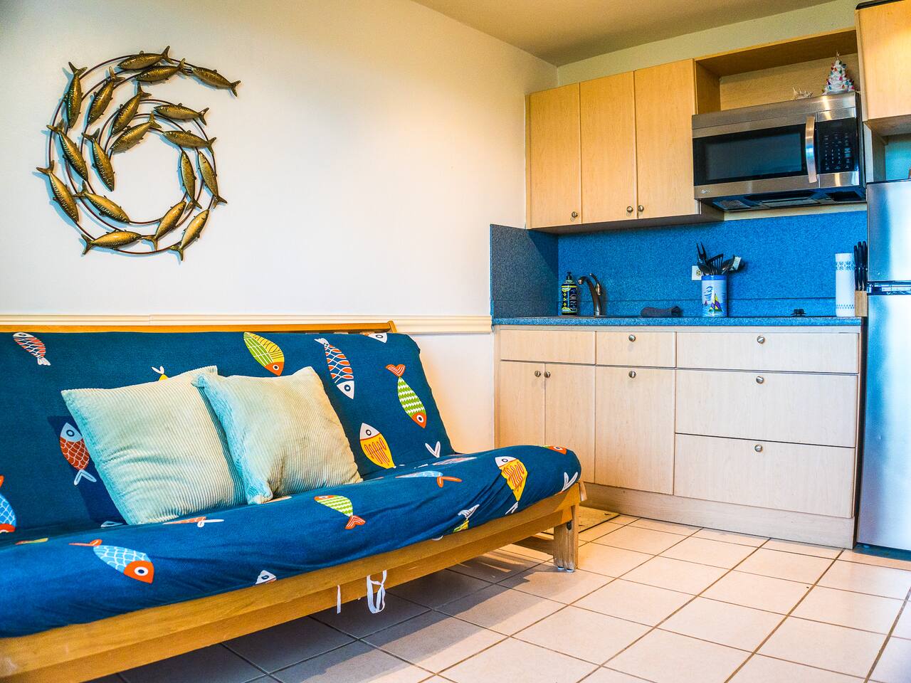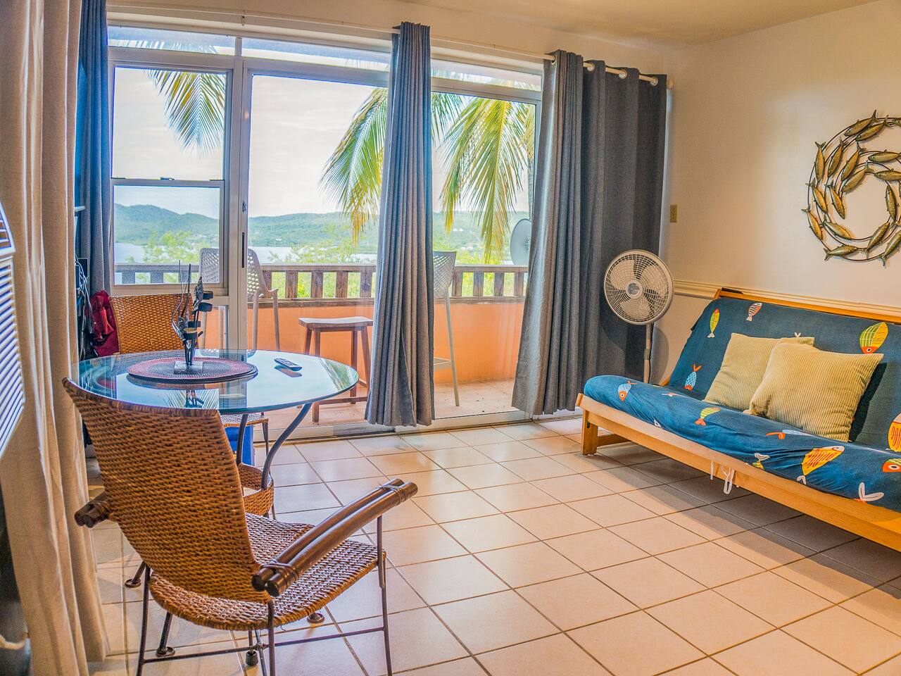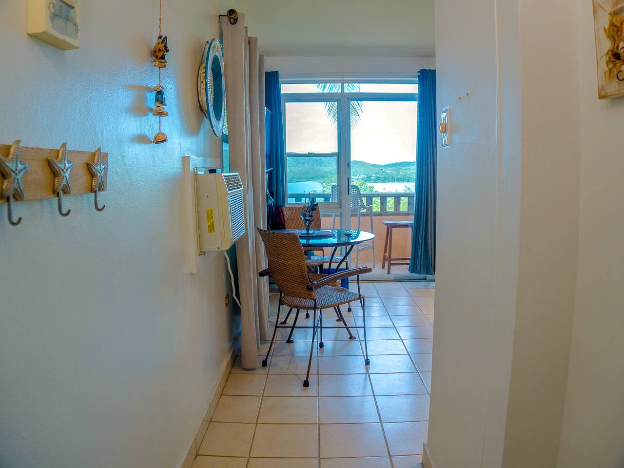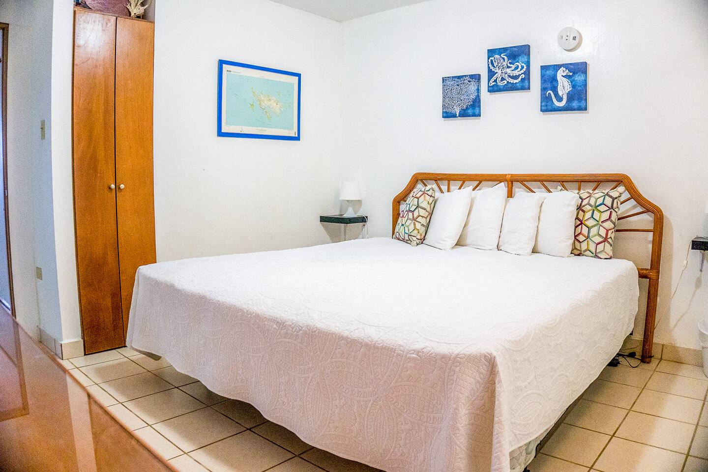 1 bedroom, 2 full bathrooms apartment. This first floor apartment consists of a comfortable king size bedroom and a common area that features: a futon sofa, dining area and stocked kitchenette, both areas features A/C. We will provide beach chairs, cooler and towels.... just what you need explore Culebra's turquoise waters. Kitchen will be stocked with salt, pepper, oil as well as with the main utensils, dishes, etc to prepare meals. We hope you try our Puerto Rican coffee - also provided. This apartment can be accessed from the handicap parking without any steps. One of the full bathrooms is designed without barriers, making this property suitable for persons with limited access. The bedroom has another full bathroom attached.