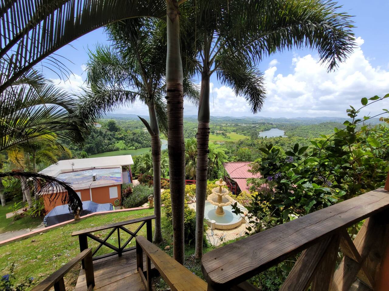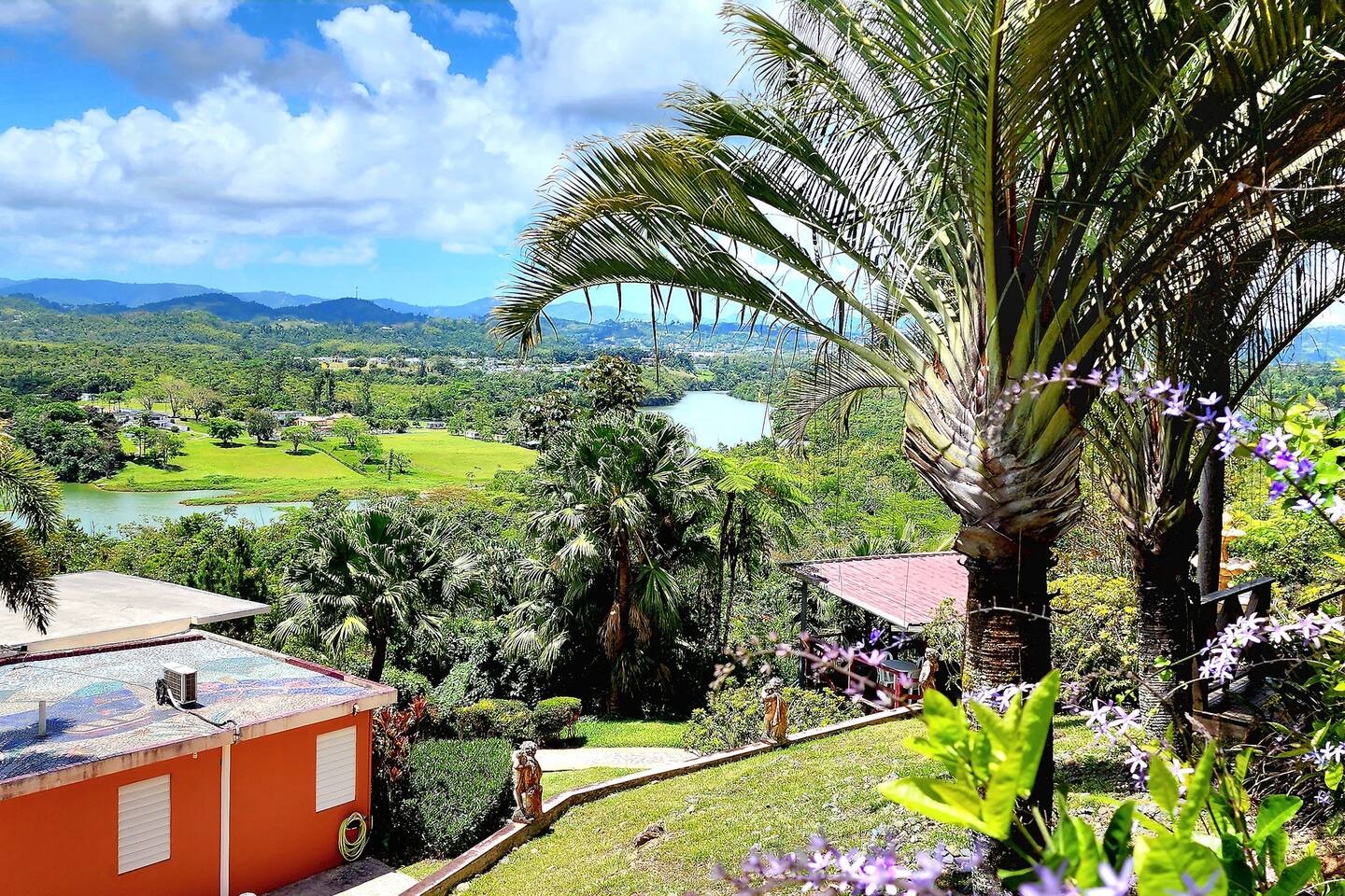 Located in the charming town of Cidra, this apartment, located in the main house's lower level, is the perfect base for exploring the natural beauty of Puerto Rico. After a long day of exploring, retreat to your cozy master bedroom with A/C for a peaceful night's sleep. Enjoy the breeze of the Cidra chill and the pedestal fan in the second bedroom. Wake up refreshed and ready to take on the day, with the stunning views of the mountains and lake right outside in your private balcony and garden. The apartment features an open layout and a fully equipped kitchen with an amazing view and breeze, perfect for preparing delicious meals with locally sourced ingredients with the stunning view as your assistant. Enjoy your meals in the dining area outside on the patio, surrounded by the tranquility of nature. Take advantage of the lake access and explore the expansive 5-acre property. You can kayak, fish, or simply relax on the shore. Enjoy scenic walks or hikes, birdwatching, and exploring the tropical vegetation. Step into the countryside where magic (and music) happens! 🎶 Visit the iconic video site, then kick back with true boricua nostalgia in our one-of-a-kind home. Looking for something truly special? Soak in nostalgia, and explore the authentic, unique, and special recreation of our grandpas' colmados and grandpas' house. Laura's special project and legacy for future generations. Ready for your own story? Ready to meet Laura? This boricua will pamper you as much as you want.