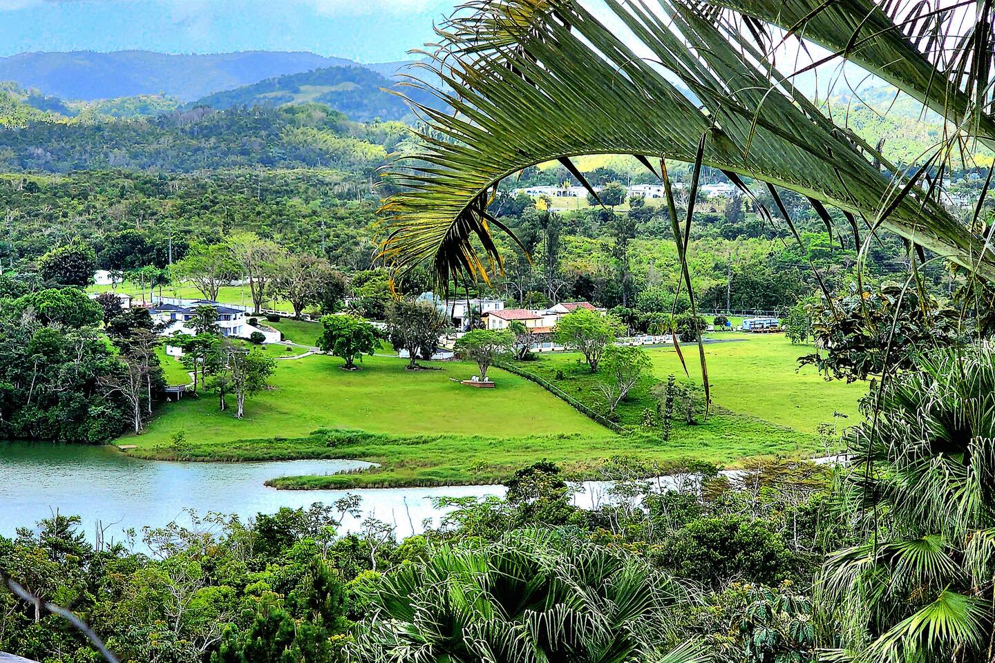 Charming living space, filled with natural light that provides the perfect atmosphere for relaxation. 🍃 Enjoy the warmth of the tropical breeze 🌄 Take in the breathtaking views from your private balcony 🚣♀️ Take advantage of the lake access 🏞️ Explore the expansive property and enjoy scenic walks or hikes, taking in the beauty of the surrounding mountains & lush tropical vegetation. Do you like Bad Bunny? 📹 Visit where he filmed the Cafe con Coco video. Where music and nature meet.