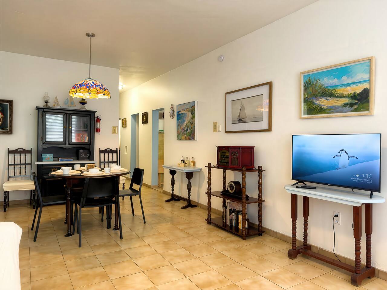 Stay in one of Vieques’ most convenient and family-friendly locations. This cozy home comfortably accommodates up to 6 guests, making it perfect for families or small groups. Just 7 minutes walking from the ferry, 4 minutes to the beach, and steps from restaurants and the grocery store, no car needed. If your priority is walkability, family-friendly space, and unforgettable island moments, this is the place to stay. Full Kitchen - Electric stove with oven - Microwave -Refrigerator - Keurig coffee machine and pour-over machine - Cook essentials like salt, pepper, olive oil, coffee, sugar, pot and pans - Brunch table - Toaster, blender, air-fryer Master Bedroom with suite living room - Private living room with smart TV - A/C - Queen bed - Huge leather sectional Bedrooms 2 and 3 - Small double bed (antique and tall beds) - Closet - A/C Bathroom - Shower - Water heater Dining areas - For 4 in the common living area - For 4 in the kitchen brunch area - Patio area Garage - 1 vehicle After a beach day, unwind in the private outdoor area with a movie projector, ideal for relaxed family nights under the stars. Safe, central, and designed for togetherness, this home offers the ease, walkability, and island charm families look for when booking Vieques. - Washer - Dryer - Projector screen with projector - BBQ with utensils - Beach essentials - wagon, beach chairs, beach towels, beach umbrella, cooler