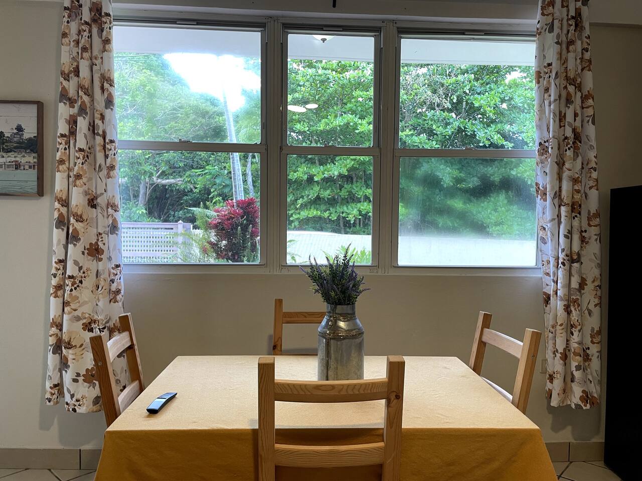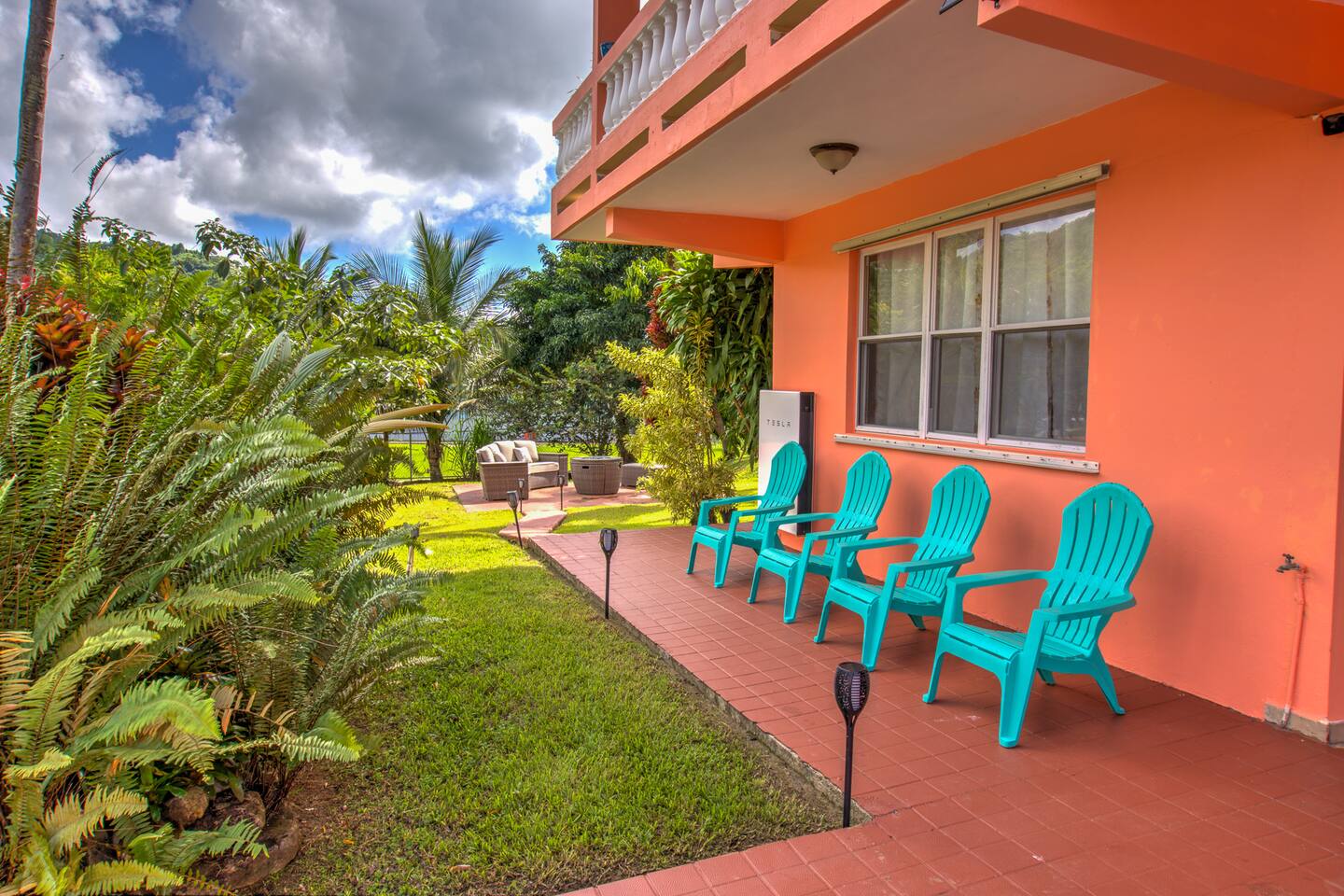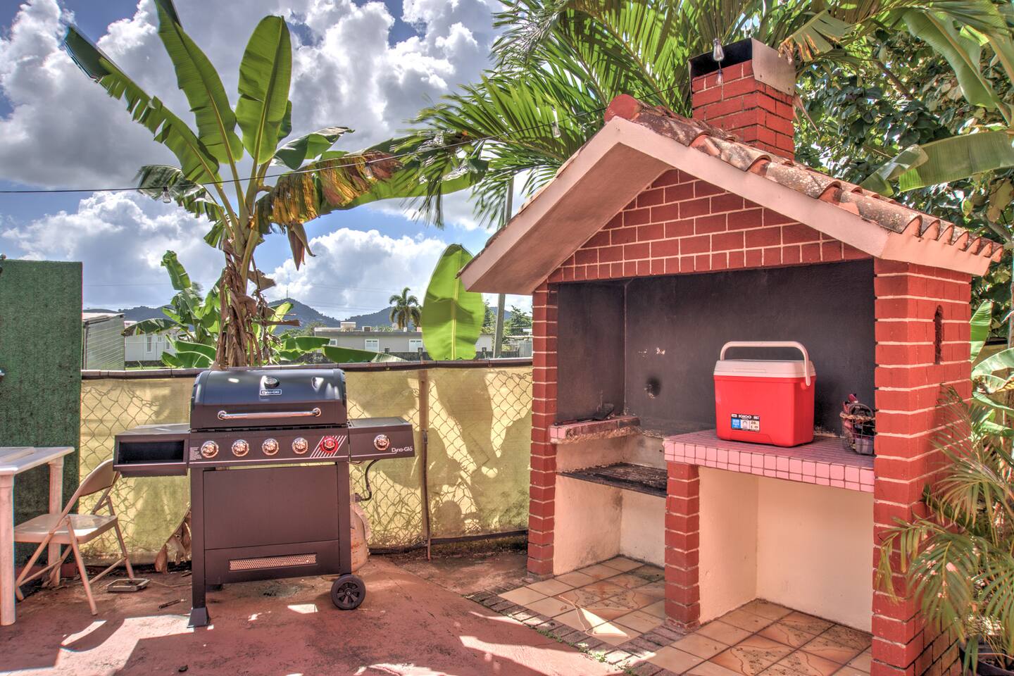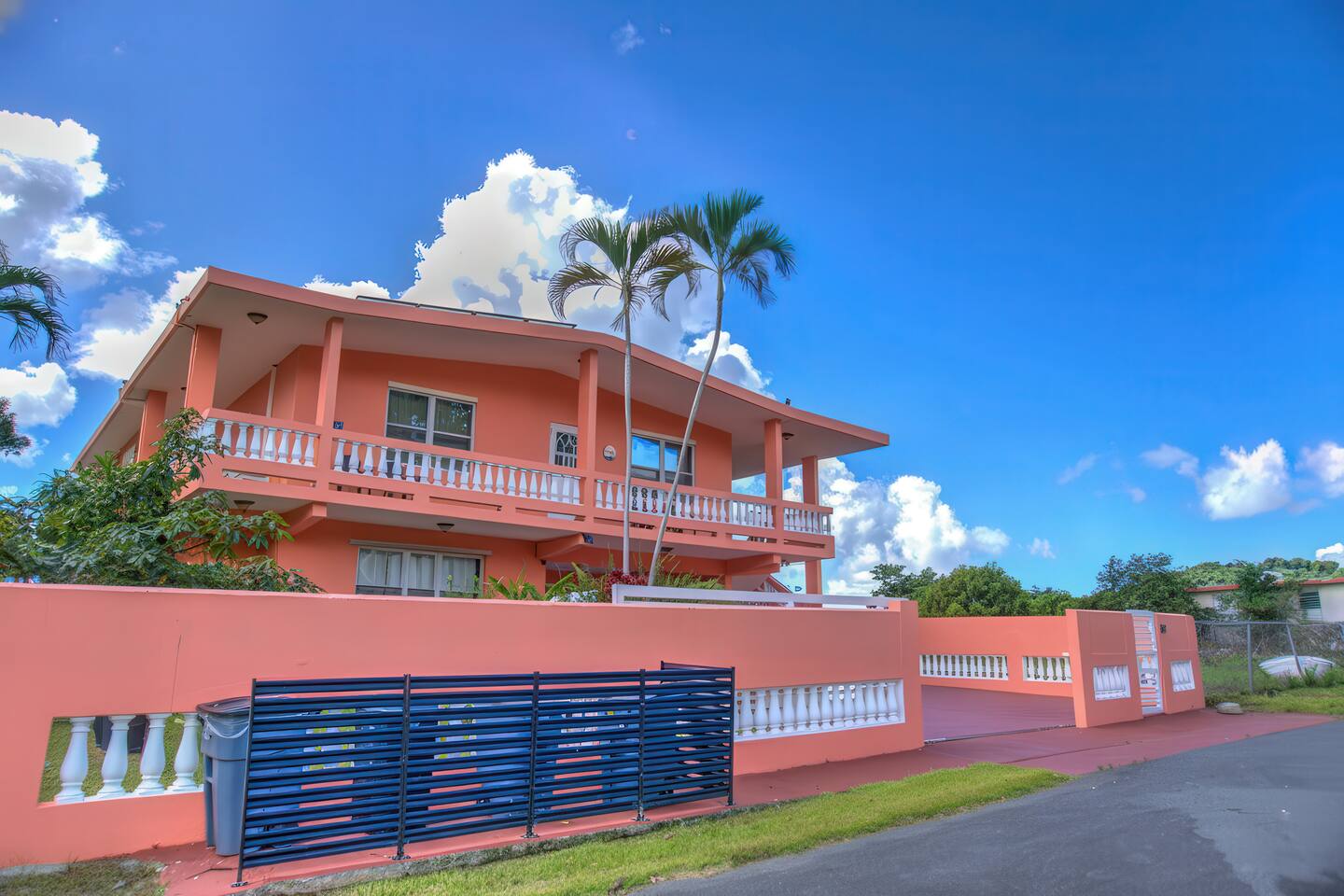 Wake up to a new day with roosters and birdsongs. Take a moment to admire Mother Nature from the balcony. The tall mountains at the horizon are part of the National Rain Forest El Yunque's south side. Driving in, you'll leave the highway to take a narrow road between cattle and plantain fields. Be amazed by the green mountains on whose skirt this community is nestled. It's a short drive to the house. What makes this property unique is the way it's divided. You'll have 3 separate units for your group, providing more privacy for family circles. The space is divided as follows: On the first floor you'll find two independent units, each with one bedroom, one bathroom, a kitchen, a dining area, and a living room with a TV. A/C in the bedrooms. Laundry area on the patio area. Unit A accommodates 4 guests Unit B, 2 guests. The second floor is a 3-bedroom/2-bath house with sleeping space for 7 guests. Enjoy A/C's in all rooms and common areas. You'll be surprised by the ample space, tall ceilings, all around balcony, and new kitchen appliances. Space inside includes a dining room and a living room with a smart TV. Another laundry area can be found on the balcony towards the back. A carport with space for 2-3 vehicles will have them accessible. Patio with big pool, BBQ, seating areas, outdoor shower, and half bathroom. Ample grass area with tropical plants and trees, including avocado, sugarcane, breadfruit, plantains, papaya, "quenepas" and other fruit trees. Know that this property is rented for a single group. You will not be sharing the space with anyone else outside your group. Did you know you can cross Puerto Rico from the east to the west in only 3 hours? Our guidebook will give you ideas of what to do around the area and even a bit further. Explore the opportunity to visit places of interest around Puerto Rico during the day, knowing you will return to a clean and comfortable place to rest.