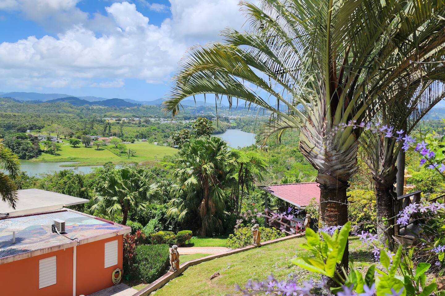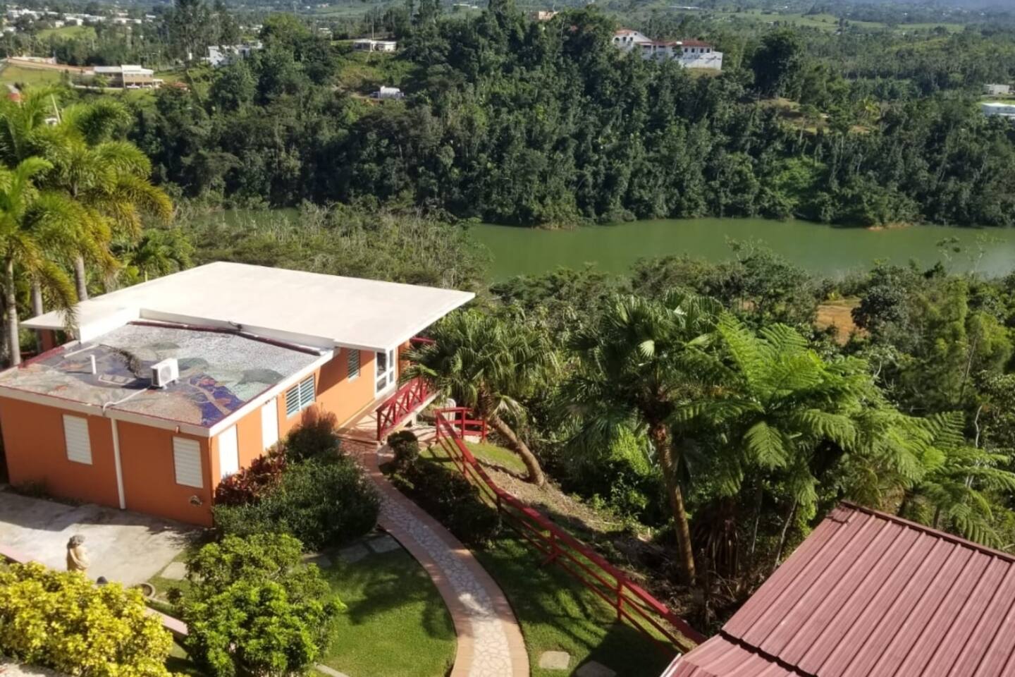Unwind on the porch or take a leisurely stroll through the property's lush landscapes. This property is an invitation to experience the simplicity & beauty of nature. These are the highlights of this property: 1 bedroom with en-suite bathroom Lake access for a refreshing afternoon or a peaceful paddle (Kayak not included - available for a fee) This retreat is a haven for hikers and birdwatchers, with scenic trails winding through the expansive property. Secluded and private property Sharing the 5-acre property are two additional rental units, each designed for comfort and seclusion. The owners, residing on-site, are available to enhance your experience with local insights, personalized recommendations, and a warm welcome. Whether you seek solitude in the beauty of the surroundings or friendly interactions with the hosts, this property offers a harmonious balance between the personal touch of a home and the privacy of your own haven. Perfect escape to enjoy the Christmas freshness of Cidra and the country area of Puerto Rico. Pets are welcome to join in the retreat. Step into the countryside where magic (and music) happens! 🎶 Visit the iconic video site, then kick back with true boricua nostalgia in our one-of-a-kind home. Looking for something truly special? Soak in nostalgia, and explore the authentic, unique, and special recreation of our grandpas' colmados and grandpas' house. Laura's special project and legacy for future generations. Boricua owned!