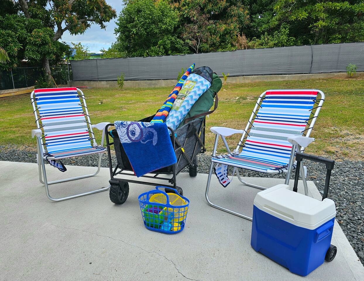 - Beach essentials Beach towels, umbrella, beach blanket, snorkeling gear