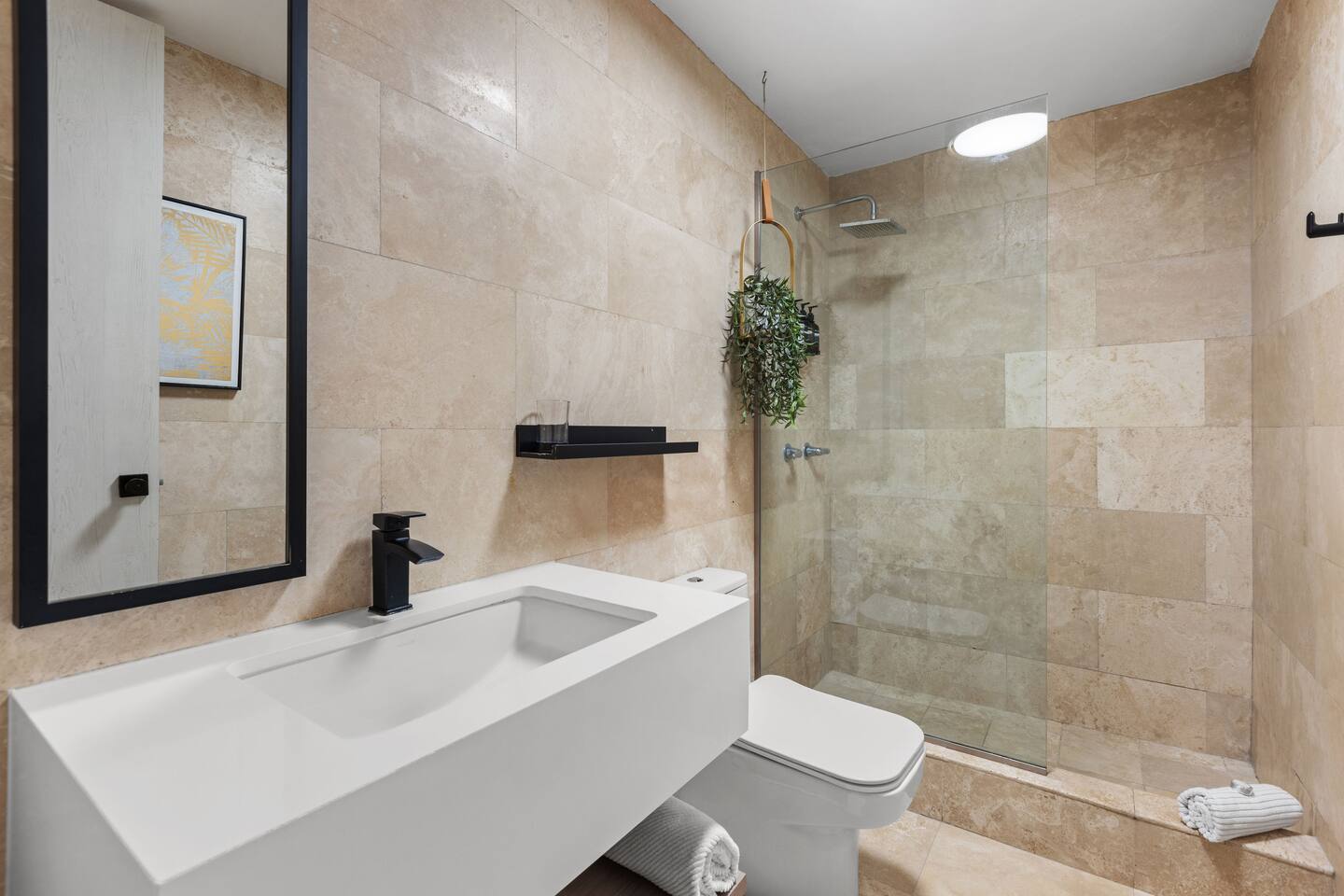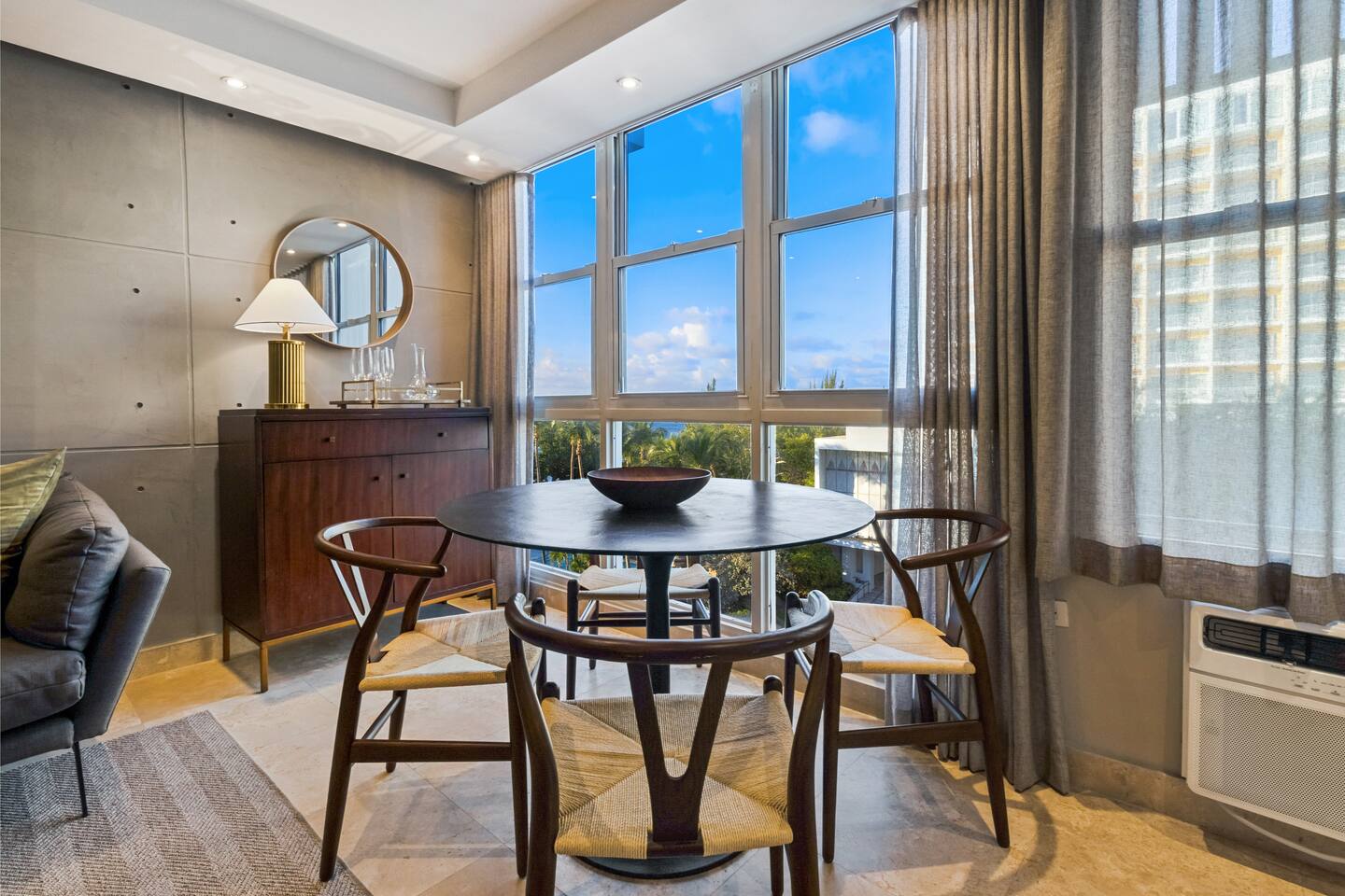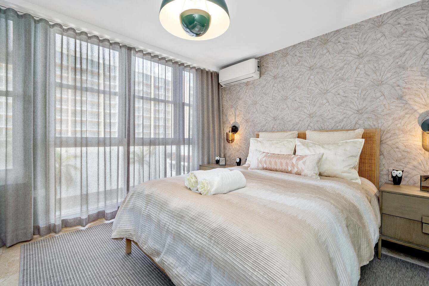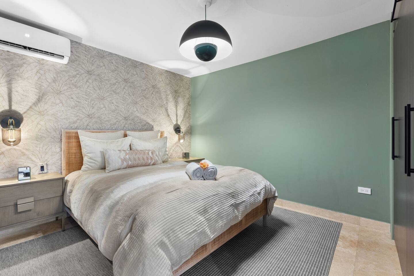 Enjoy amazing ocean and lagoon views right from the living room and master bedroom. Relax in the open living and dining area, with comfy seating, a smart TV for streaming, and art from Puerto Rican artists. The whole place is air-conditioned, so you'll stay comfortable no matter the weather. The bedrooms are exquisitely designed and comfortable, with a king and queen bed for a good night's sleep. Expect fresh bedding and plenty of closet space. The master bedroom also has its own attached bathroom. The kitchen is fully stocked with everything you need: stainless steel appliances, a fridge, stove, oven, air-fryer, coffee maker, and microwave. We’ll have some cooking basics, coffee pods, ground coffee, sugar, cool water, and a few local beers waiting for you. There are two bathrooms, so everyone has plenty of space. You'll also find a hair dryer and flat iron ready for use. Get ready to explore Puerto Rico’s outdoors with our beach chairs, coolers, snorkel gear, and kids' beach toys. If you're traveling with a baby/toddler, we've got a playpen/foldable crib ready for you. Be right on the main strip and walkable to everything you would need. Book your stay now and enjoy an upscale experience with a bit of Puerto Rican flair!
