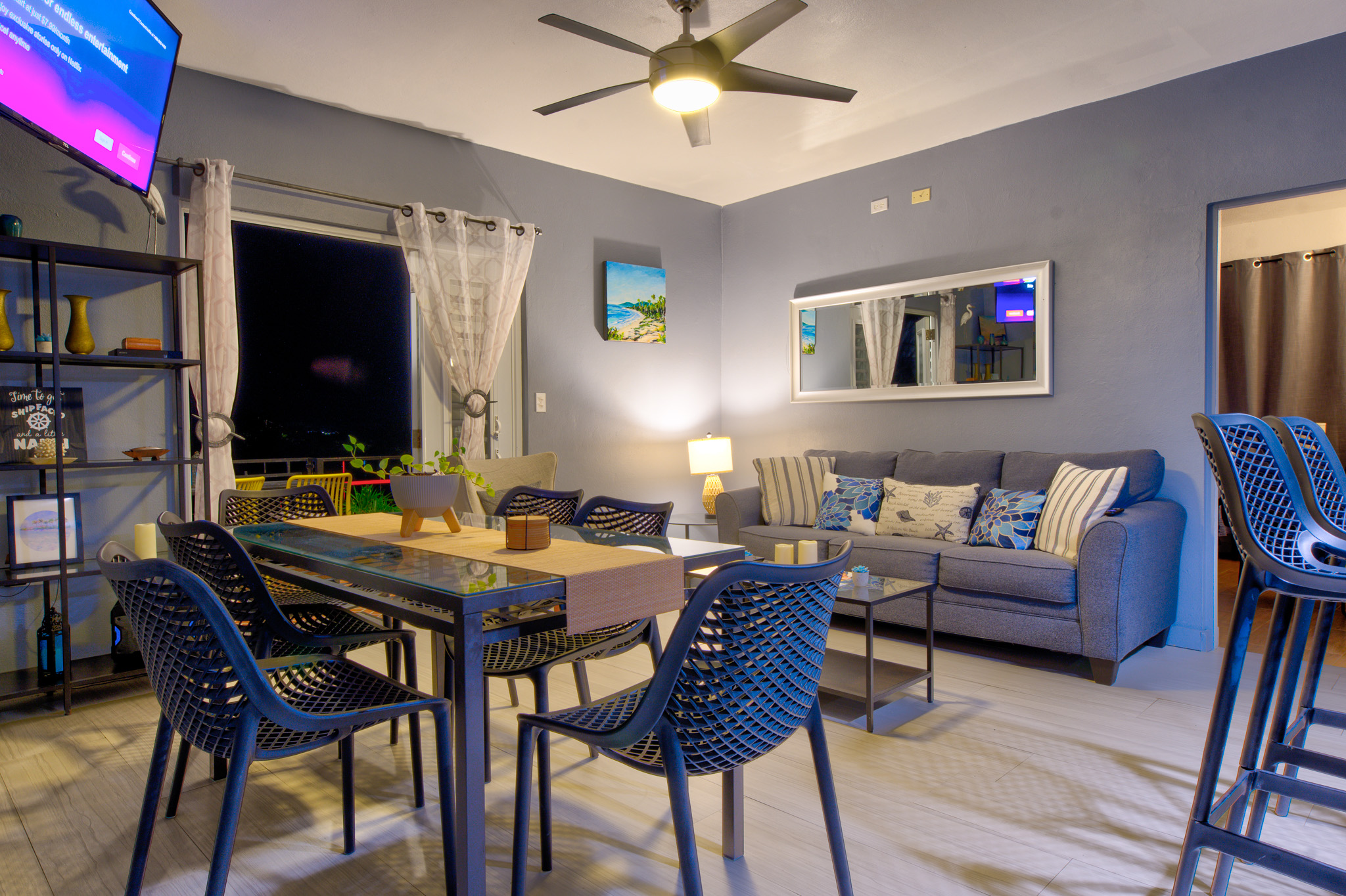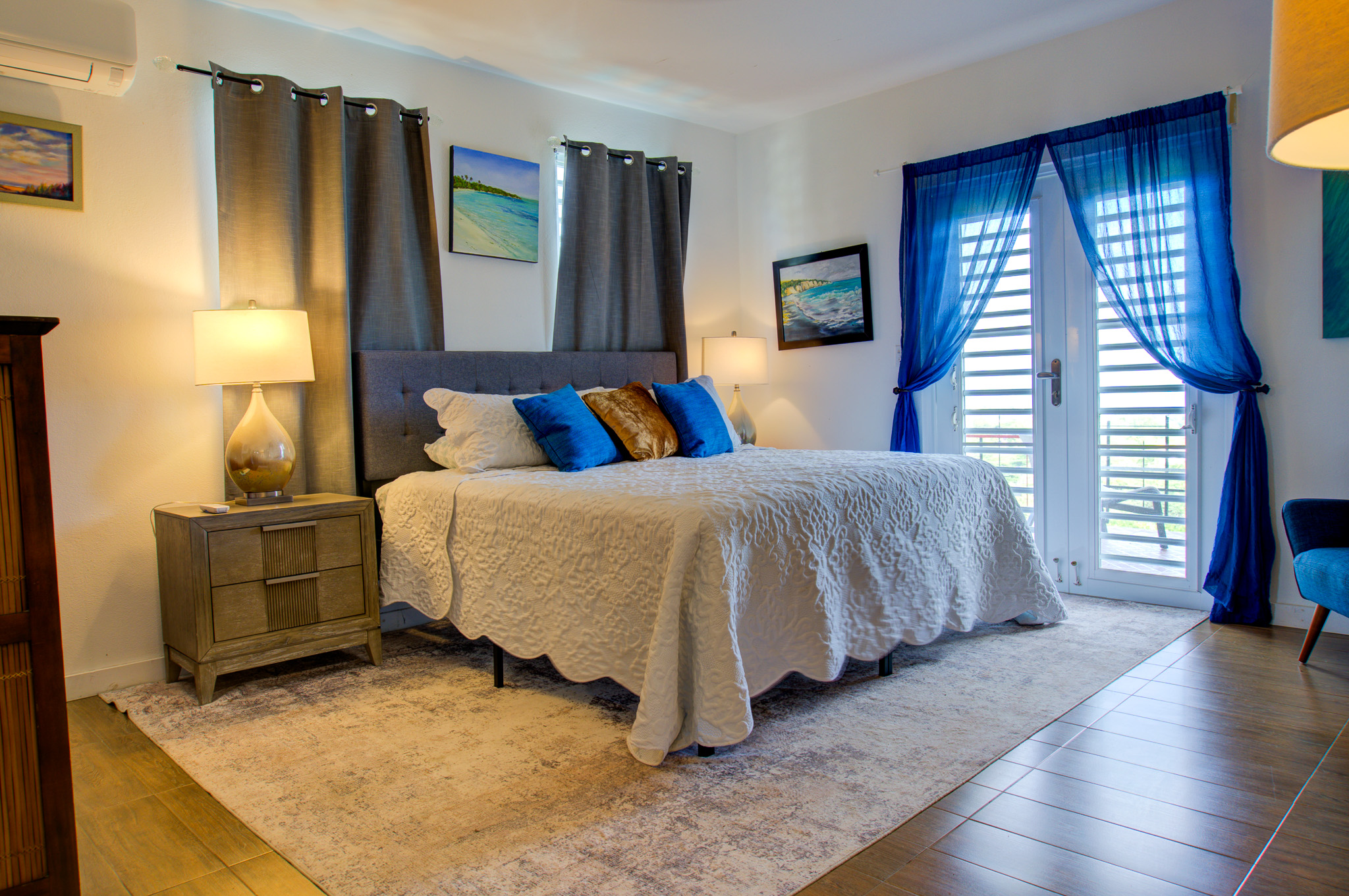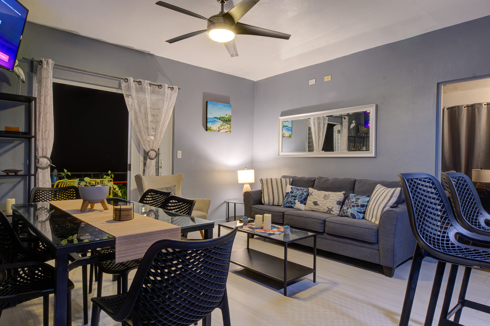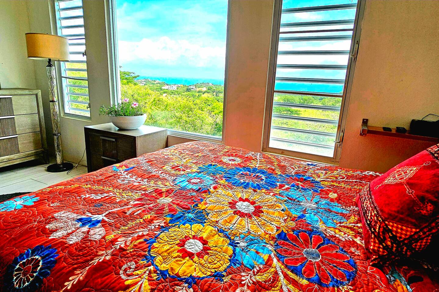 Welcome to Grand View. This 2-independent-floor house offers comfortable space for up to 6 guests. looking a place for up to 8 guests? Contact us, we have the option available. The main/top floor of the property offers our guests two spacious bedrooms, two full bathrooms, an open-concept kitchen-dining-family area with TV, a large balcony, and a garage (storage) with an automatic door. Perfect for up to 4 guests in total privacy. Now with a king bed in the master bedroom for an ultimate retreat and comfort. The downstairs features a beautiful and spacious studio with a third bedroom, right by the pool and covered terrace. It contains a full bathroom, kitchen, A/C, smart TV, sofa, and dining table. Perfect for up to 2 guests. Where is the best area of this amazing property? The pool! Enjoy the amazing view of Culebra, the east side of the big island of Puerto Rico, and the Caribbean Sea. Create memories with your loved ones at the pool, playing the life size games like Connect 4, enjoying music videos, or using your streaming apps on the exterior smart TV. Cook amazing meals at the BBQ, a perfect match for the pool area, and have dinner at the exterior dining table. Do you like art? Do not miss our beautiful mural from Jose, a local artist. Take pictures and share them with your friends. Do you like the flowers and gardens? Enjoy our gardens and beautiful flowers. Are you in a hurry? No worries, you have a full bathroom in the patio area. Looking for a beach adventure? We got you! You will find inside the garage beach umbrellas, beach chairs, balls... and more.
