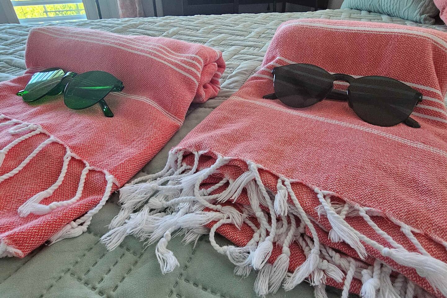 - Beach essentials Beach towels, umbrella, beach blanket, snorkeling gear