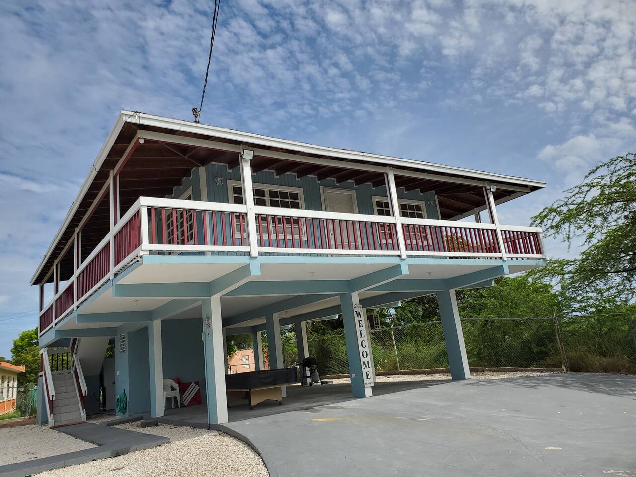 Your Perfect Beach House Awaits! 🌴 Just 6 minutes walking to crystal-clear waters and peaceful beaches, tucked away at the end of a serene street! This authentic beach retreat welcomes families, friends, and furry companions for the ultimate island adventure. What Makes This Special ✨ 🛟 Now with a underground pool - pictures coming soon 🀞 Pool table & dominoes - Challenge the family to game nights! 🎱 🌅Wrap-around balcony - Perfect for morning coffee and sunset drinks 🫕BBQ & outdoor dining - Grill under the stars on your private patio 🤗 Brand new gazebo 🏖️All beach gear included - Chairs, towels, cooler & wagon ready to go! 🩴 Fully fenced & private 👧🏻👦🏻 🌬️ A/C in bedrooms and common area Sleep Comfortably 😴 ▪️Master bedroom: Queen bed with AC and attached bathroom ▪️Ocean view room: Queen bed with desk and water views 🌊 ▪️Kids' room: Triple bunk beds - they'll love the sunset views! ▪️Living room - sleeping sofa Perfect for your Family Beach Vacation ▪️3 full bathrooms (1 per floor and gazebo) plus an outdoor shower to rinse off beach sand ▪️Spacious kitchen with everything you need - cooktop and outdoor BBQ has you covered! 🔥 ▪️55" Smart TV for movie nights after beach adventures ▪️Washer/dryer - keep those beach towels fresh (just bring your favorite detergent) Bonus Features 🎉 ▪️Hammock & multiple seating areas - Relax however you like ▪️Boat/jet ski storage - Bring your water toys! ▪️Pet-friendly - Your 4-legged friend is welcome too 🐾 (fees apply). Ready for your Puerto Rican beach adventure? Book now and start making memories! 🏝️