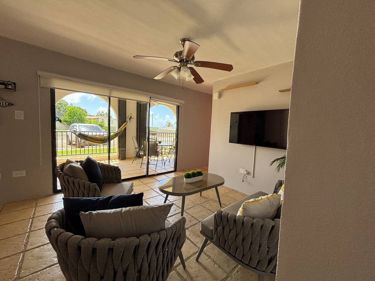 Beautiful apartment in the coast with pool, BBQ and no stairs! A 2-minute walk away from the beach. Laugh over games on the spacious balcony as coquí frogs sing, cook in the shiny clean kitchen, and chill with whisper-quiet A/C in every bedroom. Our space is safe, breezy, and packed with island vibes. We are Boricua owned 🇵🇷 #liveboricua Ground-floor apartment - with easy access, perfect for families with kids and grandparents.