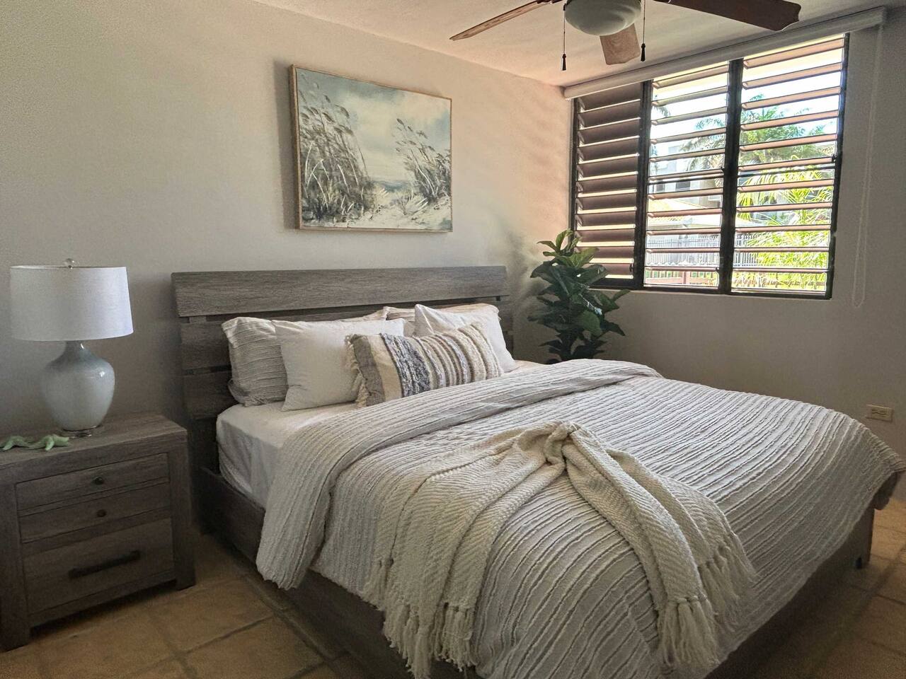 Our apartment offers a quiet, breezy and tropical escape for your group. The convenience of having 2 parking spots right across from the building and the pool across the street, plus the beach gate at only a 2-minute walk, makes this place our favorite spot. You will love with this place's breeze! Open all windows and doors feel the breeze and the open space. The big balcony will probably be one of the main areas to spend your time. The meeting place, where we all get together, share jokes, anecdotes and stories. A hammock, a table with chairs, and a domino table are some of the amenities we provide for you to have a real Puerto Rican experience. The pool is located across the street from out building. The beach feels private as there’s a lock gate. Beach volleyball net, palm trees, shadow trees and grass right by the sand, makes this a perfect spot to spend the day by the sea. We provided: chairs, towels, toys, and a cooler—all in an easy-to-take beach cart. A smart TV where you can log in to your streaming accounts will be by the family room– yes, with good WiFI–, modern seats and a dining table for 4 next to it. A bright and fully renovated kitchen with full-size appliances and cookware, plus windows side to side will make cooking-time bright, fresh and pleasant. Get your group of up to 7 comfy. Beautifully decorated rooms and comfortable beds – including a king size bed in the master– are in place for a good night's rest. A/C's in each one will assure a break from the tropical weather. Each room provides storage space. Both bathrooms has been fully renovate– we understand that very few experiences compare to having a shower in a new bathroom 😉. We have shampoo, conditioner and body wash for you. Plus, a laundry area with a new washer and dryer is available for your to use; just bring your preferred detergent. The complex has a basketball court and tennis court and a children’s playground, all for you to enjoy. Now, that’s only in the apartment and complex. A whole island awaits outside the gates to be explored. We will be more than happy to suggest what to do and what to try while in Naguabo and neighbor towns. Ask us!