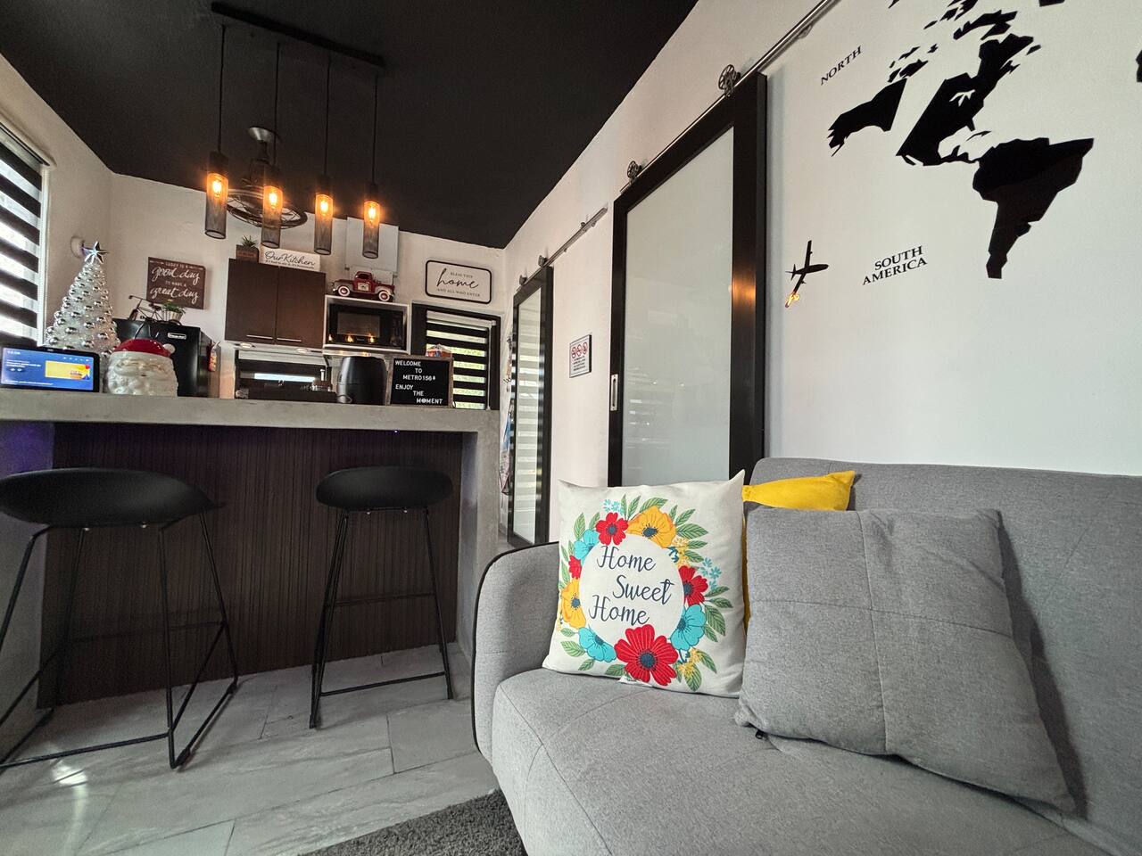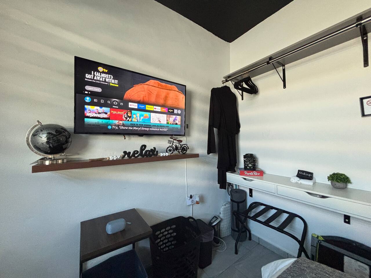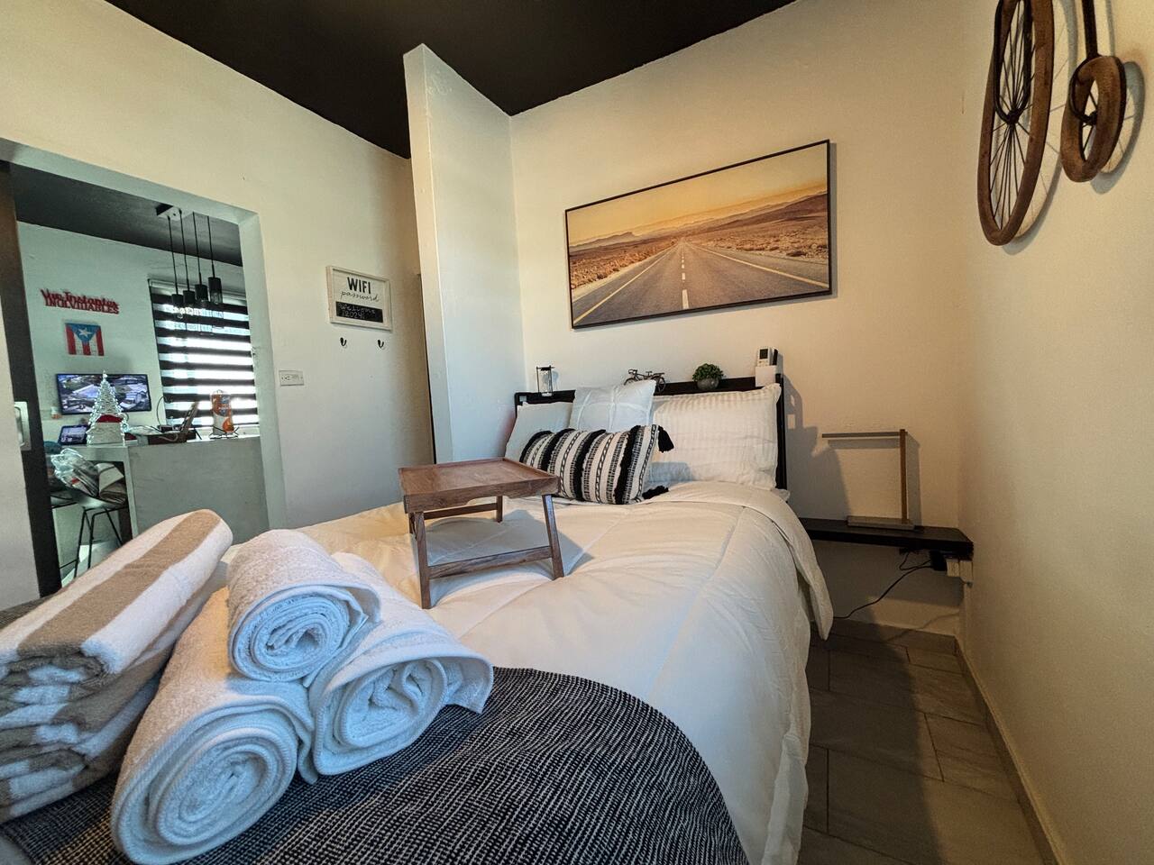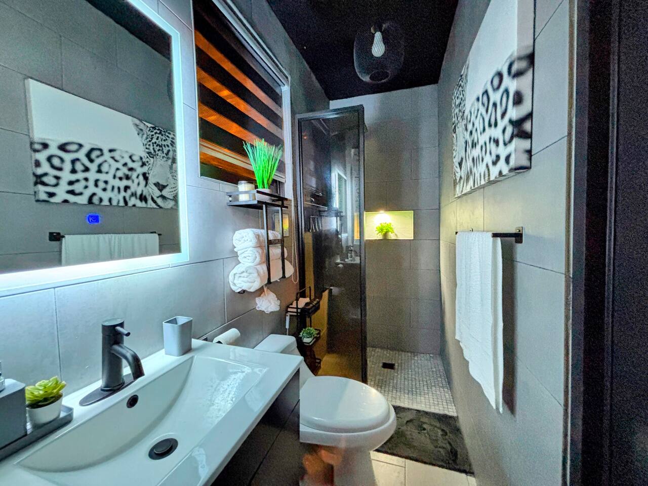 Welcome to "Outdoor Haven," a retreat right in the heart of the metropolitan area. This home is designed to maximize your enjoyment of the outdoors, offering comfort, style, and unforgettable experiences. Step into relaxation with two inviting seating areas: one under a shaded terrace equipped with a TV, ambient lighting, and a cooler, and another featuring a retractable shade, fire pit, and smart projector for seamless streaming. Whether you’re soaking in the jacuzzi, shaded or under the stars, or rinsing off in the outdoor shower, every moment is crafted for your ultimate comfort. Ready to test your grilling skills? The pergola terrace is your perfect outdoor kitchen, complete with a gas BBQ, sink, counters, and storage, all conveniently located near a dining table where cherished memories are made. Enjoy meals under retractable shades or the open sky, surrounded by lush ambiance. Don't stop your exercise routine. Play basketball in our basketball area and use our stationary bike to keep that heart in shape. Inside, the house offers modern tech and thoughtfully curated lighting throughout the property. The interior is designed to impress, with every detail tailored to create a sense of awe. Fully air-conditioned, the home features two bedrooms with full-size beds, a beautifully remodeled bathroom, and a functional, stylish kitchen. Each bedroom and the family room is equipped with TVs, ensuring comfort and entertainment for all. The kitchen includes everything you need to host up to four guests: a two-burner electric stove, microwave, full-size refrigerator, counter space, utensils, and dinnerware. The master bedroom provides direct access to the stunningly remodeled bathroom, blending beauty and practicality. The second bedroom features a compact workspace with a desk, chair, and keyboard for your convenience. This house comes with an electric power generator to guarantee the service all the time. Conveniently located, *Outdoor Haven* puts you close to everything you need: - 8 minutes from SJU Airport - 7 minutes from The Mall of San Juan - 5 minutes from El Escorial Shopping Center - 9 minutes from Isla Verde Beach - 20 minutes from Old San Juan - 1 hr from El Yunque