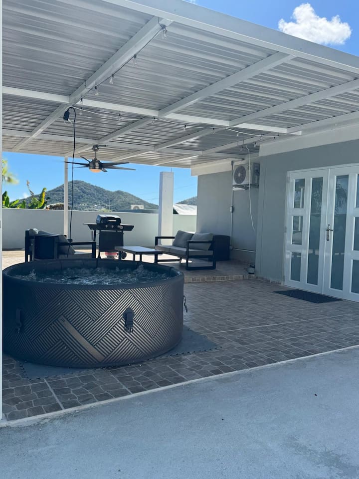 This fully remodeled house will be your hub while visiting family and/or experiencing what the southern area of PR has to offer. Located in a peaceful and safe working-class neighborhood, we invite you to feel right at home. With 3 nicely decorated bedrooms, a full bathroom, and a spacious terrace with a jacuzzi, we invite you to relax and enjoy Patillas. Our guidebook will help you experience the area with activities like the beach, hiking, culinary experiences, and more. Boricua owned!