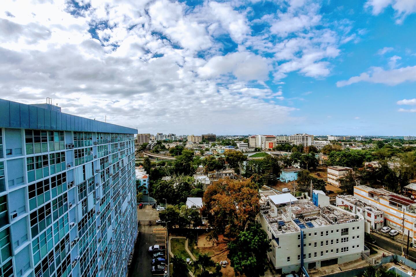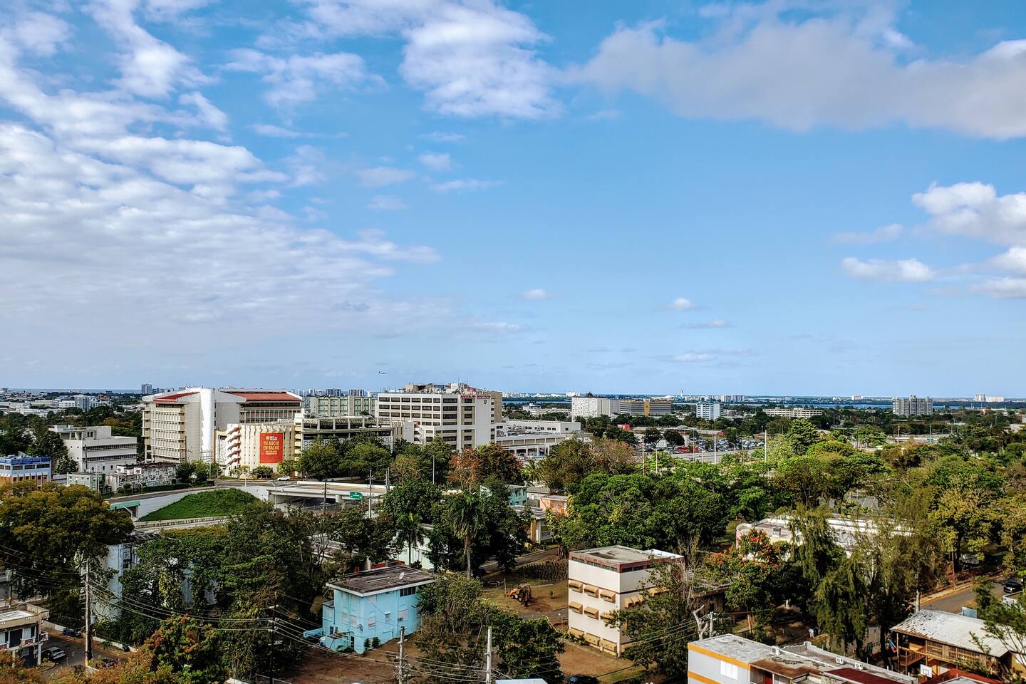 Panoramic views from high above the bustling city for an unforgettable stay On-site gym (building) Gated and assigned parking In-unit laundry Fast Wi-Fi 24-hr security Walking distance to local restaurants, UPR university, and attractions Uber-friendly 11 minutes from the international airport (SJU) Don't wait — book now and indulge in a perfect mix of comfort and prime location amenities!