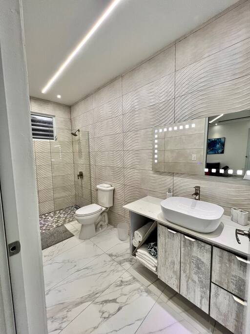Your spacious, spotless “home away from home” between San Juan and Isla Verde—easy, comfortable, and exactly as pictured. 🏡 The Space (2BR/2.5BA) Primary suite: King bed with ensuite bathroom Second bedroom: 2 Queen beds (perfect for families & groups) Living + dining area: roomy and relaxing for everyone 🍳 Fully Equipped Kitchen Cook, reheat, or snack anytime; set up for real stays ❄️ Comfort Built-In Full A/C throughout for cool, restful nights Smart TVs in both bedrooms and living room 🧼 Impeccably Clean Guests consistently mention how spotless and well-kept it is 🔐 Easy Arrival Gated community with coded entry for smooth check-in 🏖️ Beach-Ready Chairs, umbrella, towels and cooler; grab and go to Isla Verde Beach (3 minutes walking) 🏊♀️ Pool Access Shared pool with the other 2 units; clean, relaxing, and a favorite perk. In a hurry? No worries. Half bathroom available at the pool. Only for guests! 💬 Host Support Super responsive communication; crib available upon request