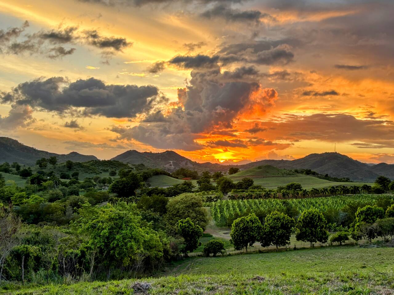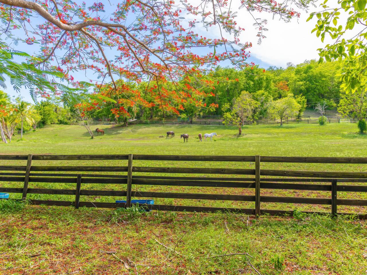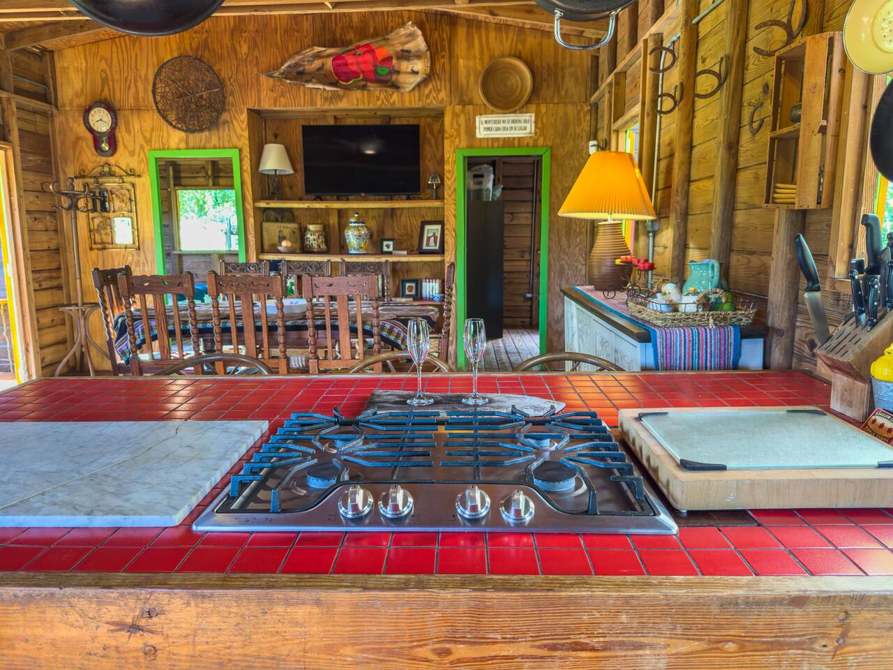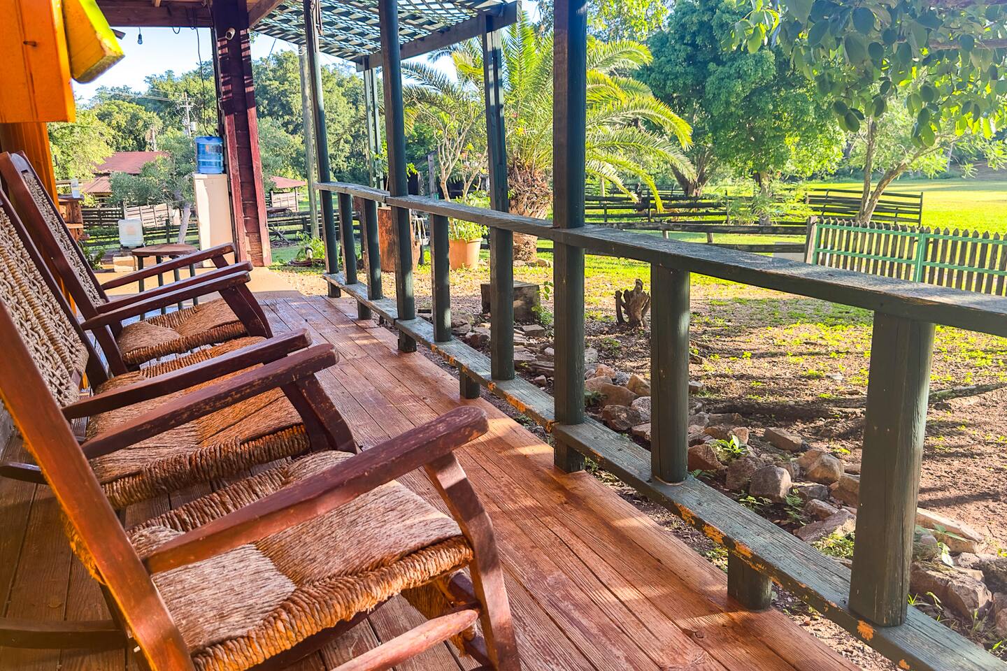 On this 161-acre Rancho Guayacán, Ceiba was the original cabin built at the property. Expect it to be rustic with great charm and the modern amenities we all enjoy, like wifi, TV, A/C in the bedrooms, full bathroom. Doors and window opens up the whole house. Close them at night for a complete black-out. Both bedrooms have fans and wall mounted air conditioning units. There is also a large fan in the main living and kitchen space. You will be greeted by a long covered front porch with rocking chairs- and probably by the horses and dogs too. a concrete patio two wooden decks under the trees. A small fiberglass (not heated) pool adds some sensory experience to your stay. It is separate from the other two homes (Aleli and Bambu) at the center of the farm.